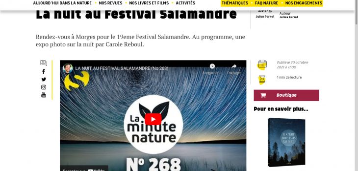 TTrès contente d’avoir été aux côtés de Julien Perrot pour cette minute nature Salamandre spécial festival de nuit réalisée lors du vernissage de l’exposition « Il était une fois la nuit » à Morges, dans le Parc de vertou.